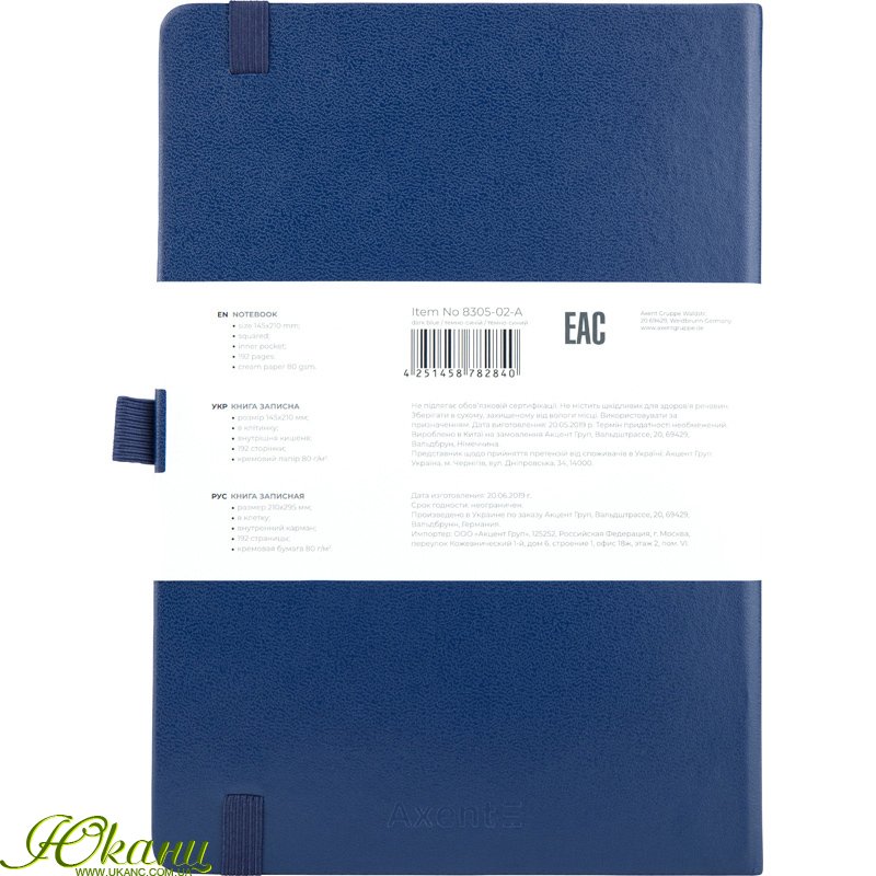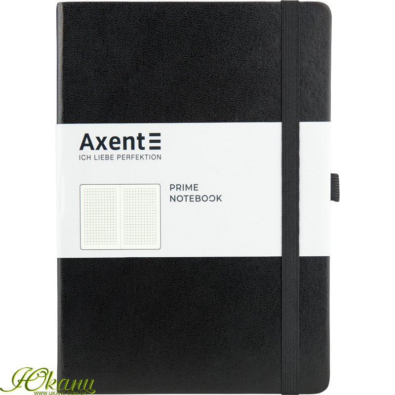 Блокнот Axent Partner Prime (А5), 145*210 мм, 96 л., клітка, на гумці, закладка, кишенька на форзаці, петля для ручки, чорний