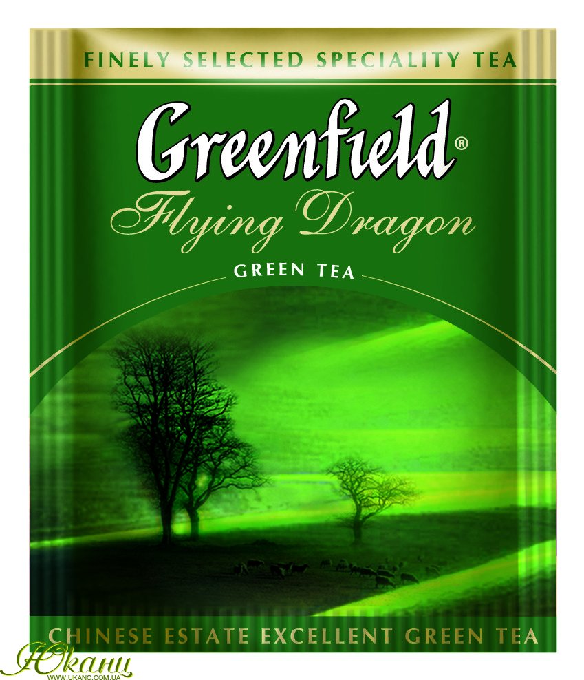 Зелений чай Greenfield Flying Dragon — зелений китайський чай із провінції Хунань Китайський зелений чай, зібраний у горах, має особливий смак. Чайні кущі тут дають невеликі, дуже ніжні листочки, які після обробки здобувають сріблистий відтінок. Чай Грінфілд Флаїнг Драгон зачаровує м'яким смаком і легким квітковим ароматом, добре освіжає й відмінно відновлює сили.