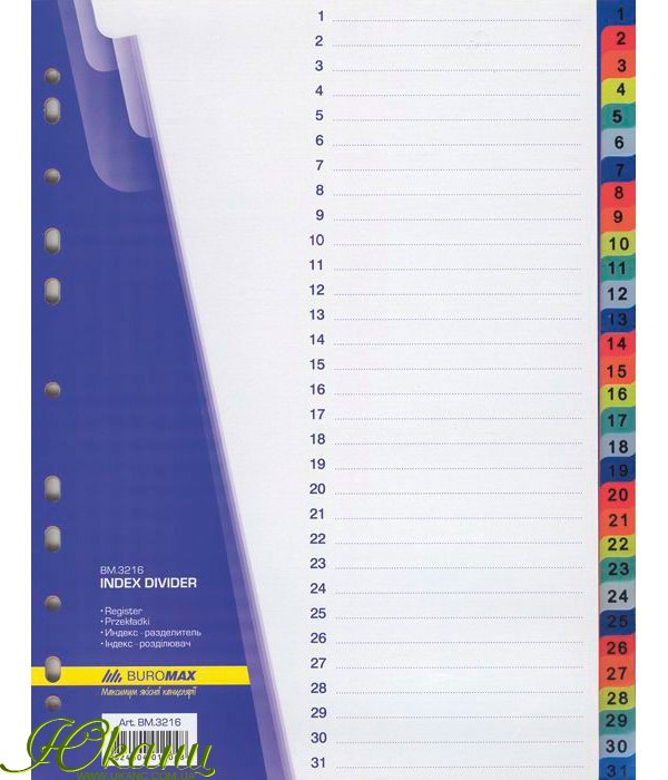Індекс-Роздільник 1-31, пластикові кольорові пронумеровані аркуші