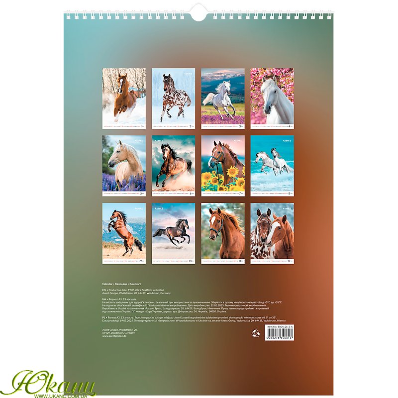 Календар настінний А3 2026 р., Horses