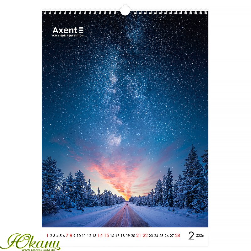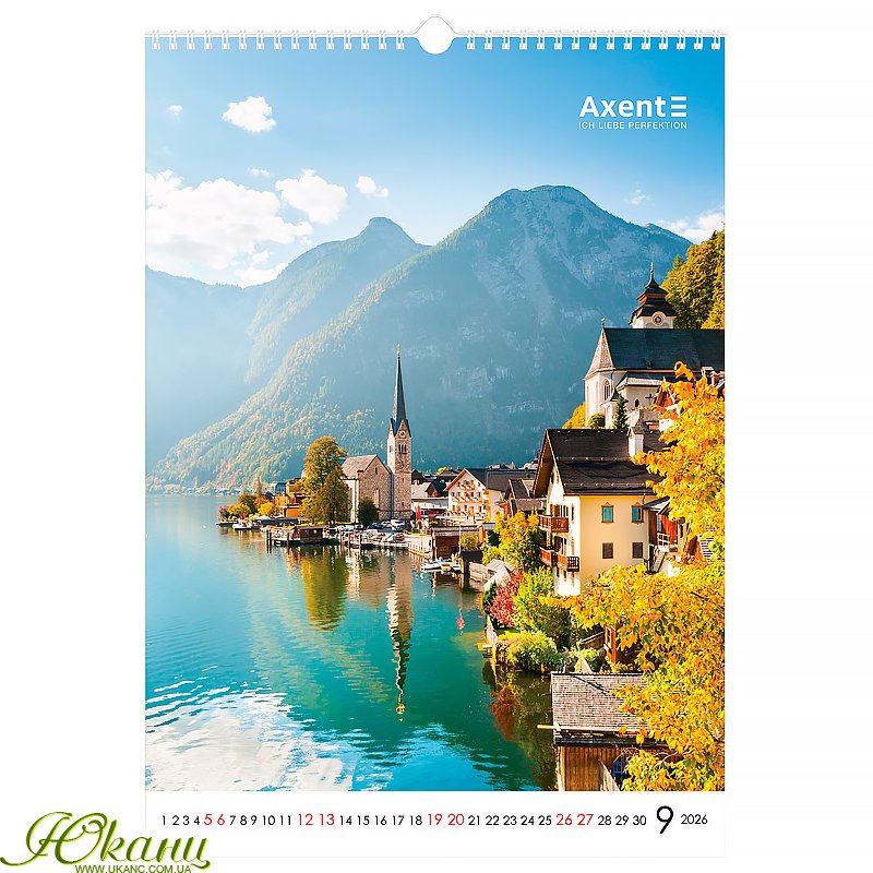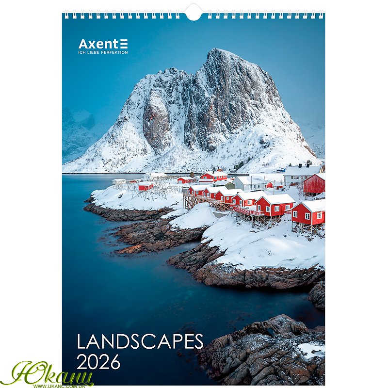 Календар настінний Axent на 2026 рік вражає своїм унікальним дизайном та бездоганною якістю. Родзинкою цієї моделі є ефектна підбірка широкоформатних постерів та лаконічний мінімалізм календарної сітки.