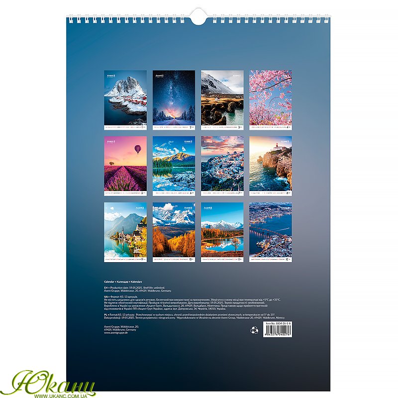 Календар настінний А3 2026 р., Landscapes