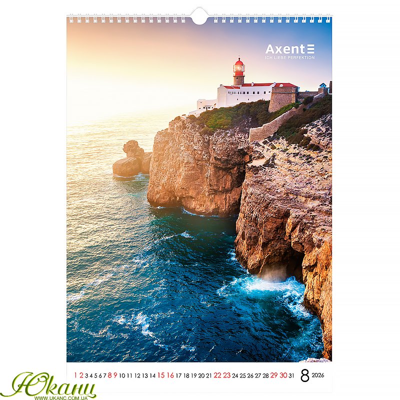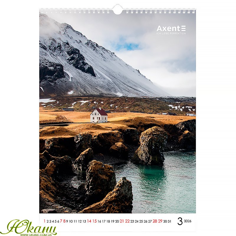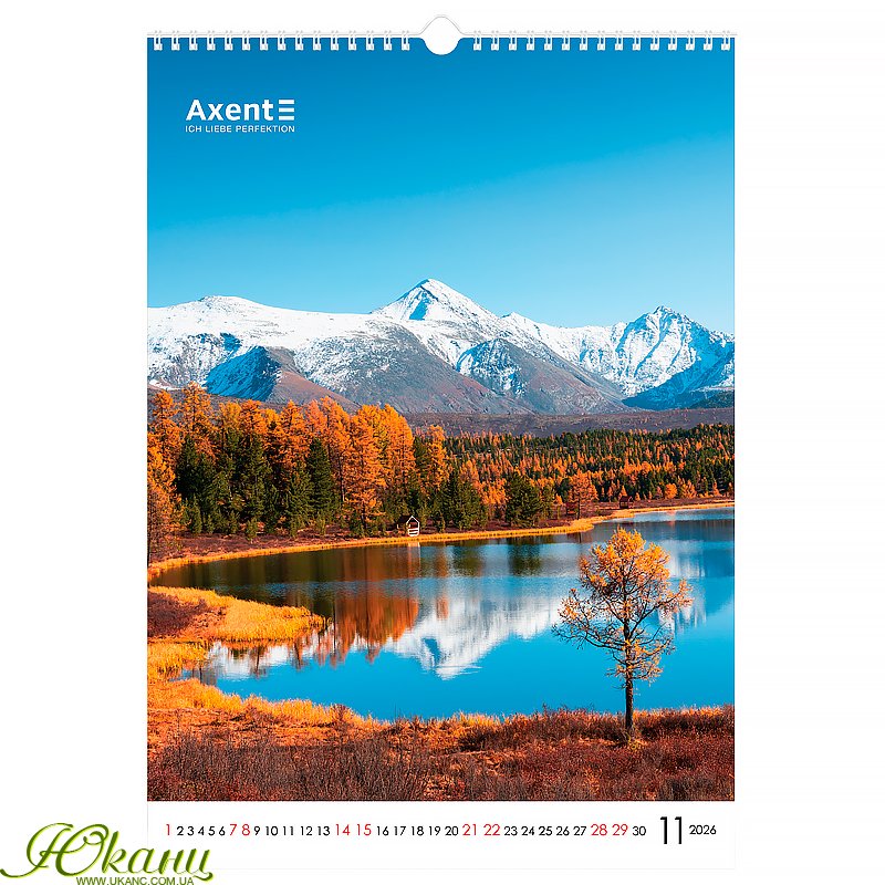 Оригінальний календар Axent стане ефектною окрасою офісу та щодня нагадуватиме вам про важливі дати. Його неперевершений дизайн з великими високоякісними світлинами порадує найвимогливіших естетів та даруватиме натхнення для успішного планування справ.