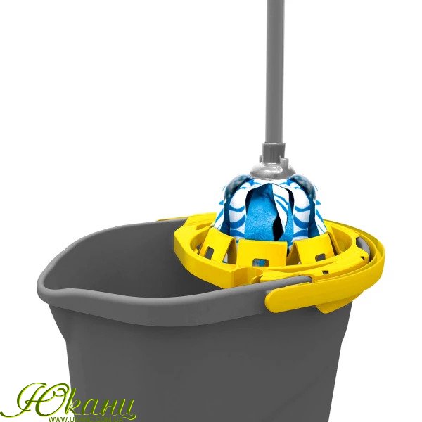 Повний комплект, що складається зі швабри для миття підлоги та відра з віджимним пристроєм. Моп подвійної дії: із зовнішньою бахромою з мікроволокна для глибокого очищення та надпоглинаючою внутрішньою бахромою для швидкого висихання. Віджим подвійної дії для більш ефективного віджиму. Рукоятка швабри довжиною 120 см складається з 3 частин, які легко збираються. Підходять для будь-яких типів підлоги.