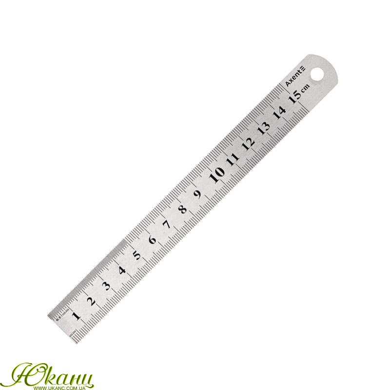 Двостороння лінійка 15 см, виготовлена з нержавіючої сталі, стійка до деформації. На одній стороні лінійки знаходиться 2 сантиметрові шкалі, на іншій - 2 дюймові. Лінійка знаходиться в PVC чохлі.