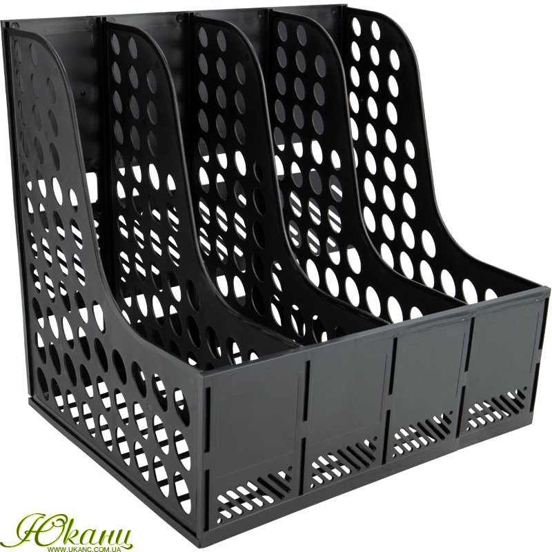Лоток вертикальний збірний на 4 відділення. Для зберігання документів А4 формату. Матеріал - поліпропілен. Розміри в зібраному вигляді: висота - 31 см, ширина - 32 см, довжина - 26 см. Продаються кожен в індивідуальній упаковці зі схемою складання + наклейки для підпису.