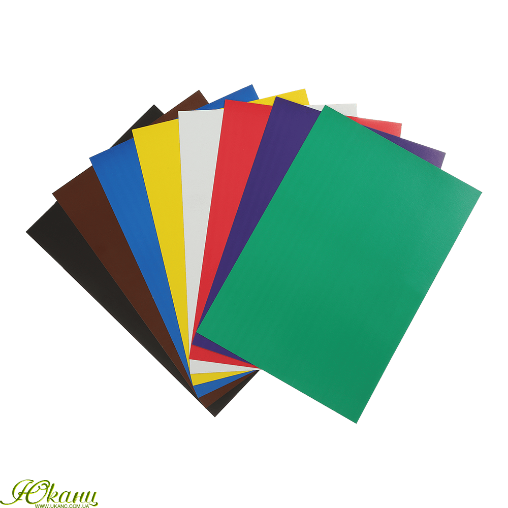 - 8 аркушів, 8 кольорів: червоний, жовтий, зелений, фіолетовий, коричневий, чорний, білий, синій