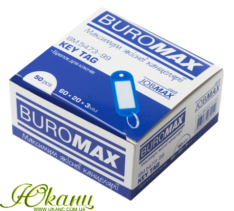 Брелок пластиковий з паперовою вставкою BUROMAX, 60х20 мм, 50 шт., картонна коробка, асорті