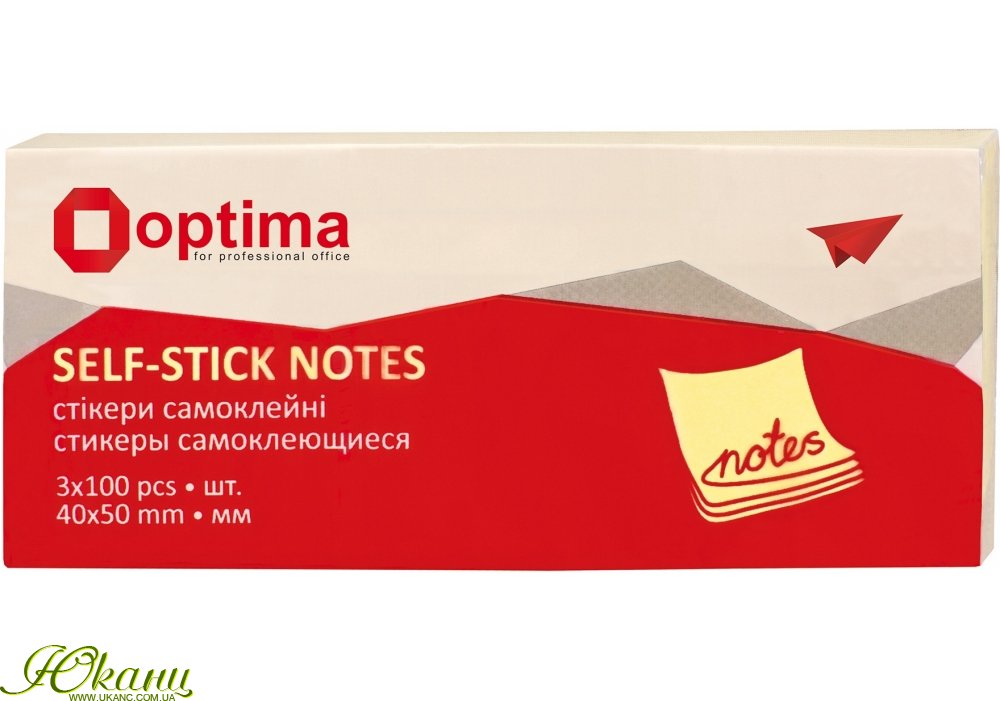 Папір-Стікер 40x50мм, 100 л., жовтий пастель (упаковка 3 блока)