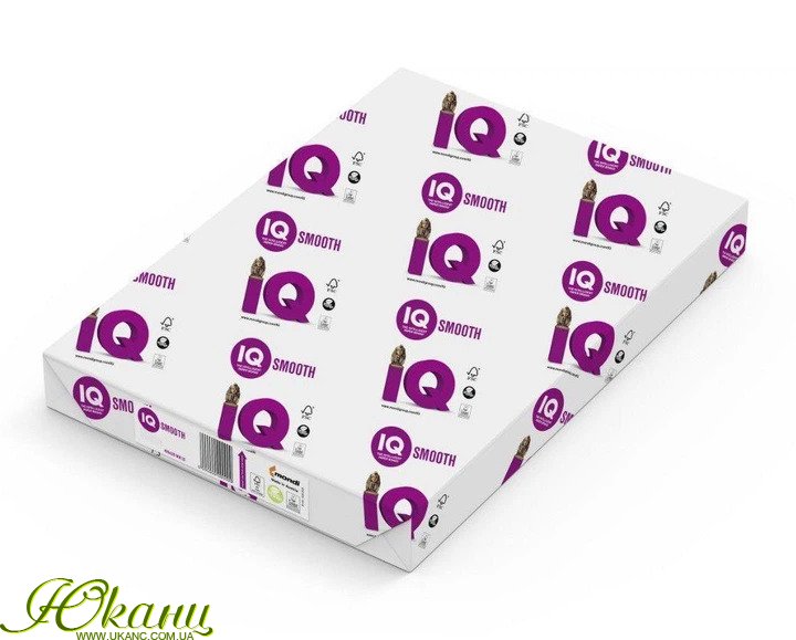 Високий ступінь непрозорості забезпечує хороші результати при чорно-білого та кольорового друку. Завдяки високій щільності папір не мнеться і не деформується в пристрої. Папір IQ Smooth розроблена для друку документів, каталогів, брошур, рекламних матеріалів і презентацій. Вона відрізняється високими технічними характеристиками: • Гладкість листа забезпечує презентабельний зовнішній вигляд роздруківки • Однорідна структура підходить для двостороннього друку • Білизна і яскравість гарантують чіткість тексту і контрастність зображень