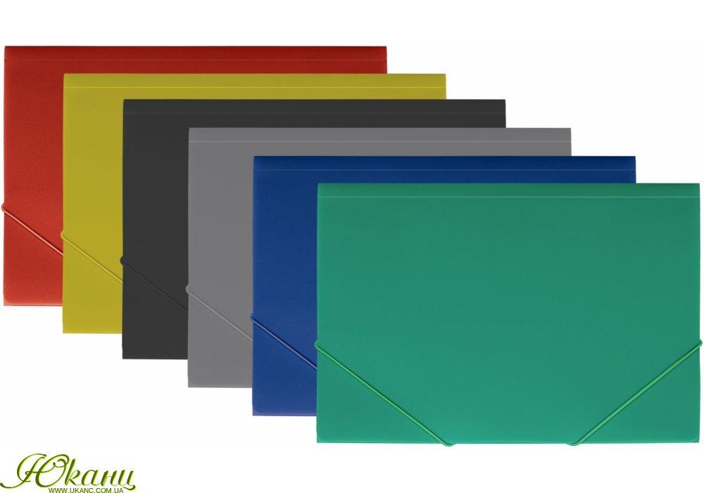 Папка пластикова А4 формату, на гумках. З можливістю розширення корінця й бічних клапонів на кілька рівнів ( від 4 мм до 35 мм). Місткість до 300 аркушів. Товщина пластику: 500 мкм.