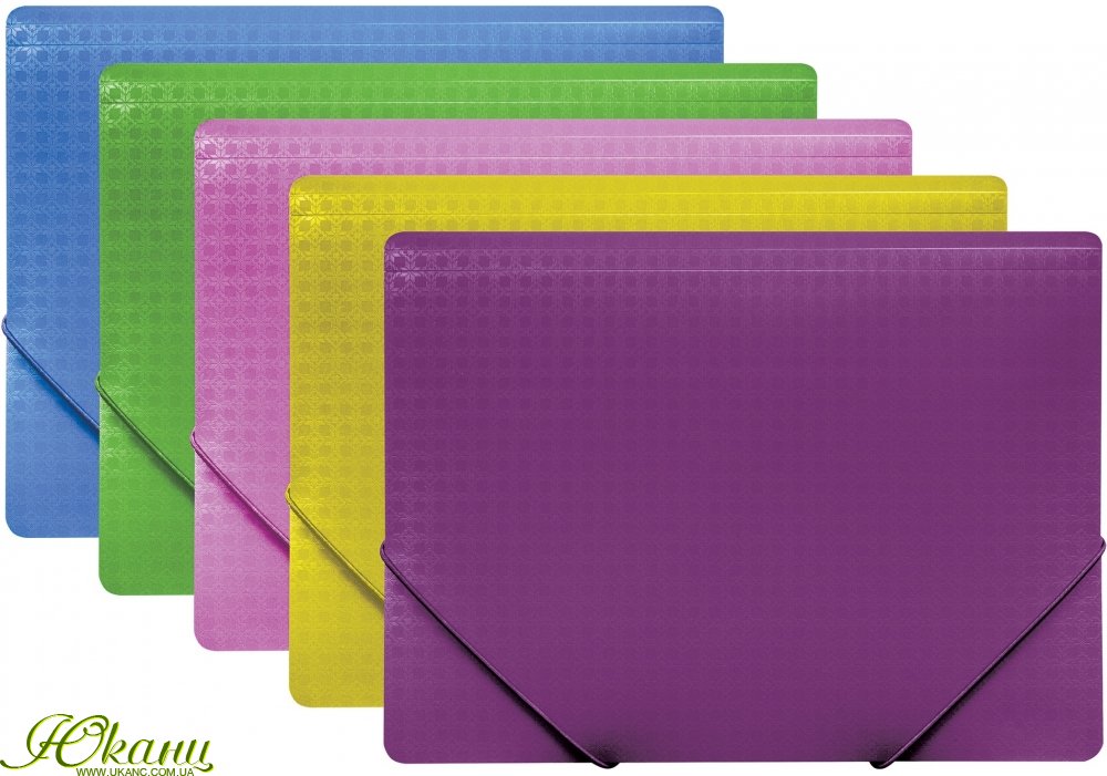 Папка пластикова А4 формату, на гумках. З можливістю розширення корінця і бічних клапонов на кілька рівнів (від 4 мм до 35 мм). Місткість до 300 аркушів. Товщина пластика: 500 мкм.