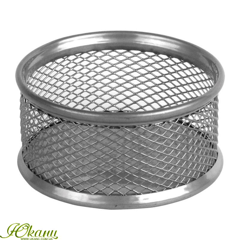Підставка для скріпок, металева сіточка. Розмір 80x80x40мм. Колір: сріблистий.