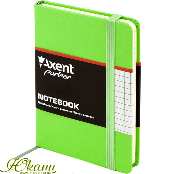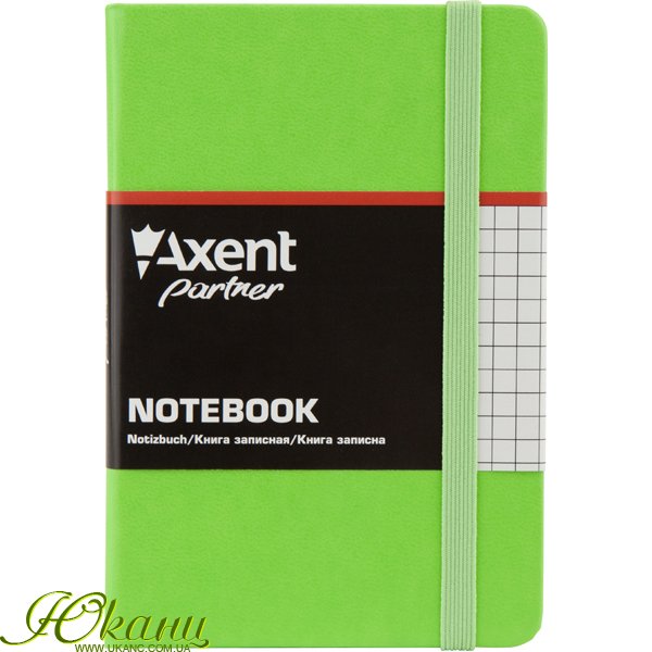 Блокнот Axent Partner 8301-04-A, (А6), 96л., клетка, твердая обложка, кремовая бумага 80г/м2, клетка, на резинке, закладка, кармашек на форзаце, петля для ручки, салатовый