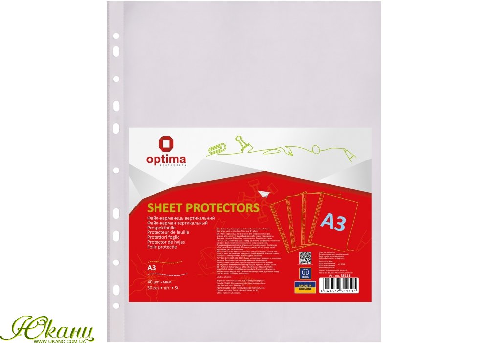 Призначений для зберігання і захисту документів. Файл-вкладиш виготовлений з поліпропіленової плівки товщиною 40 мкм. Оснащений бічною перфорацією. Використовується для різних видів швидкозшивачів.