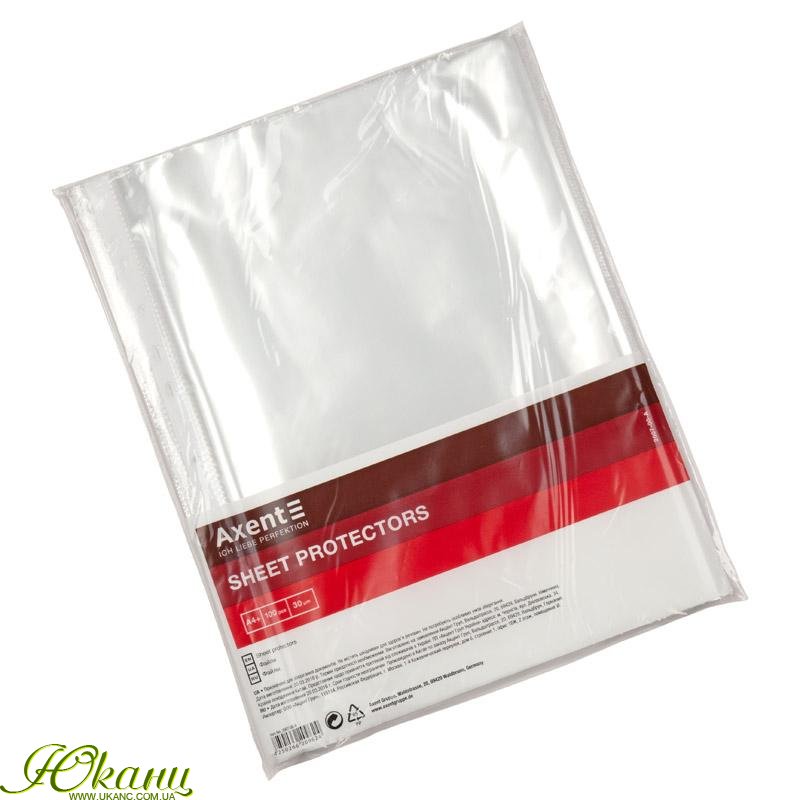 Файлы защищают бумаги от окружающих воздействий и механических повреждений. Благодаря наличию перфорации документы в файлах могут храниться в папках-регистраторах, в папках на кольцах, в папках скоросшивателях и проч. Это обеспечивает систематизацию и удобство в работе с документами. Файлы Axent изготовлены из первичного пластика, который обеспечивает максимальную прозрачность файла и идеальную глянцевую поверхность. Корешок надежно спаян с файлом - файл остается цельным и выдерживает длительную эксплуатацию. Плотность 30мкм.