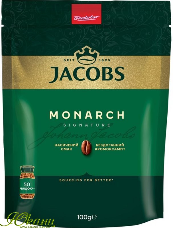 Jacobs Monarch — це високоякісна розчинна кава, виготовлена за технологією сухого заморожування, що дає змогу максимально зберегти смак і аромат кавових зерен у кожній гранулі. Кава Jacobs Monarch з кожною чашкою дарує незрівнянний багатий аромат і насичений смак натуральної кави. Тип: розчинна Вид кави: сублімована Масса нетто: 100г Країна виробник: Україна Термін зберігання 24 місяці