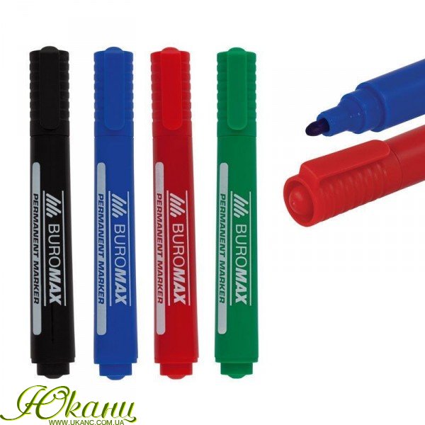 Яркие, насыщенные, высоко контрастные чернила перманентных маркеров BUROMAX устойчивы к стиранию, воздействию влаги (водостойкие), выгоранию – воздействию УФ-лучей (светостойкие), а также других атмосферных влияний.