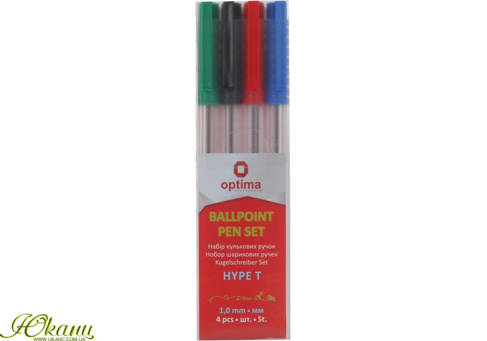 Набор шариковых цветных ручек OPTIMA HYPE T 1,0 mm 4 цвета