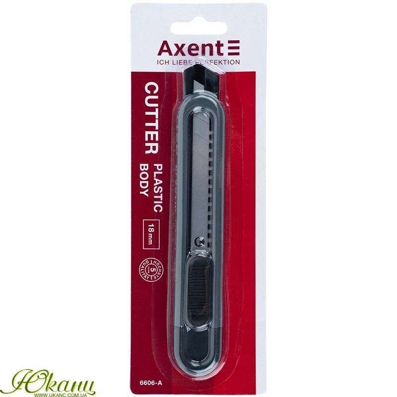 Канцелярський ніж Axent - це надійний, безпечний і довговічний інструмент для використання в офісі, на складі, на виробництві або в побуті завдяки поєднанню якості матеріалу, продуманості деталей і надійності механізму. Сталеве багатосекційне лезо забезпечує найвищу функціональність, стійкість, гостроту. Міцний пластиковий корпус стійкий до навантажень, не розбивається при падінні. Металевий механізм ступінчастої подачі леза забезпечує безпечну роботу, надійний механізм фіксації виключає ризик раптового випадіння або провалювання леза. Кришечка з пазом дозволяє просто і безпечно обламати затуплену частину леза уздовж лінії насічки і продовжувати користуватися гострим лезом. Сучасний дизайн корпусу.
