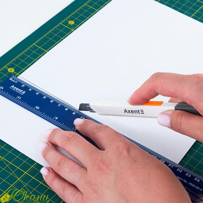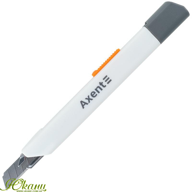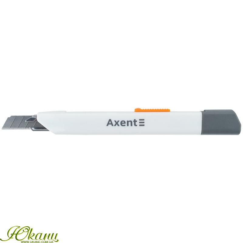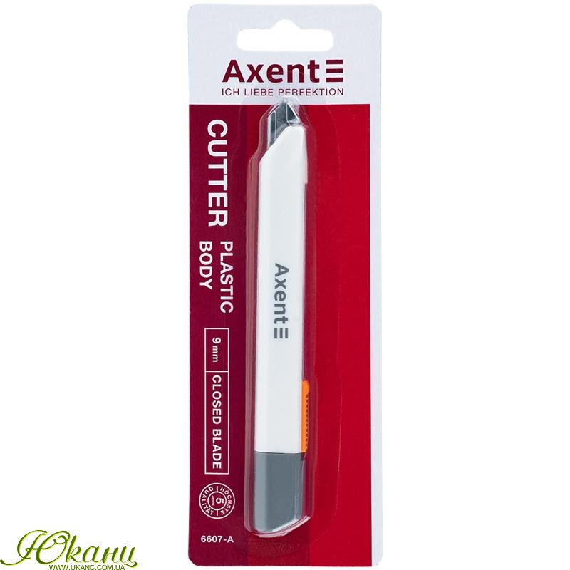 Канцелярський ніж Axent - це надійний, безпечний і довговічний інструмент для використання в офісі, на складі, на виробництві або в побуті завдяки поєднанню якості матеріалу, продуманості деталей і надійності механізму. Сталеве багатосекційне лезо забезпечує найвищу функціональність, стійкість, гостроту. Міцний пластиковий корпус стійкий до навантажень, не розбивається при падінні. Металевий механізм ступінчастої подачі леза забезпечує безпечну роботу, надійний механізм фіксації виключає ризик раптового випадіння або провалювання леза. Кришечка з пазом дозволяє просто і безпечно обламати затуплену частину леза уздовж лінії насічки і продовжувати користуватися гострим лезом. Сучасний дизайн корпусу.