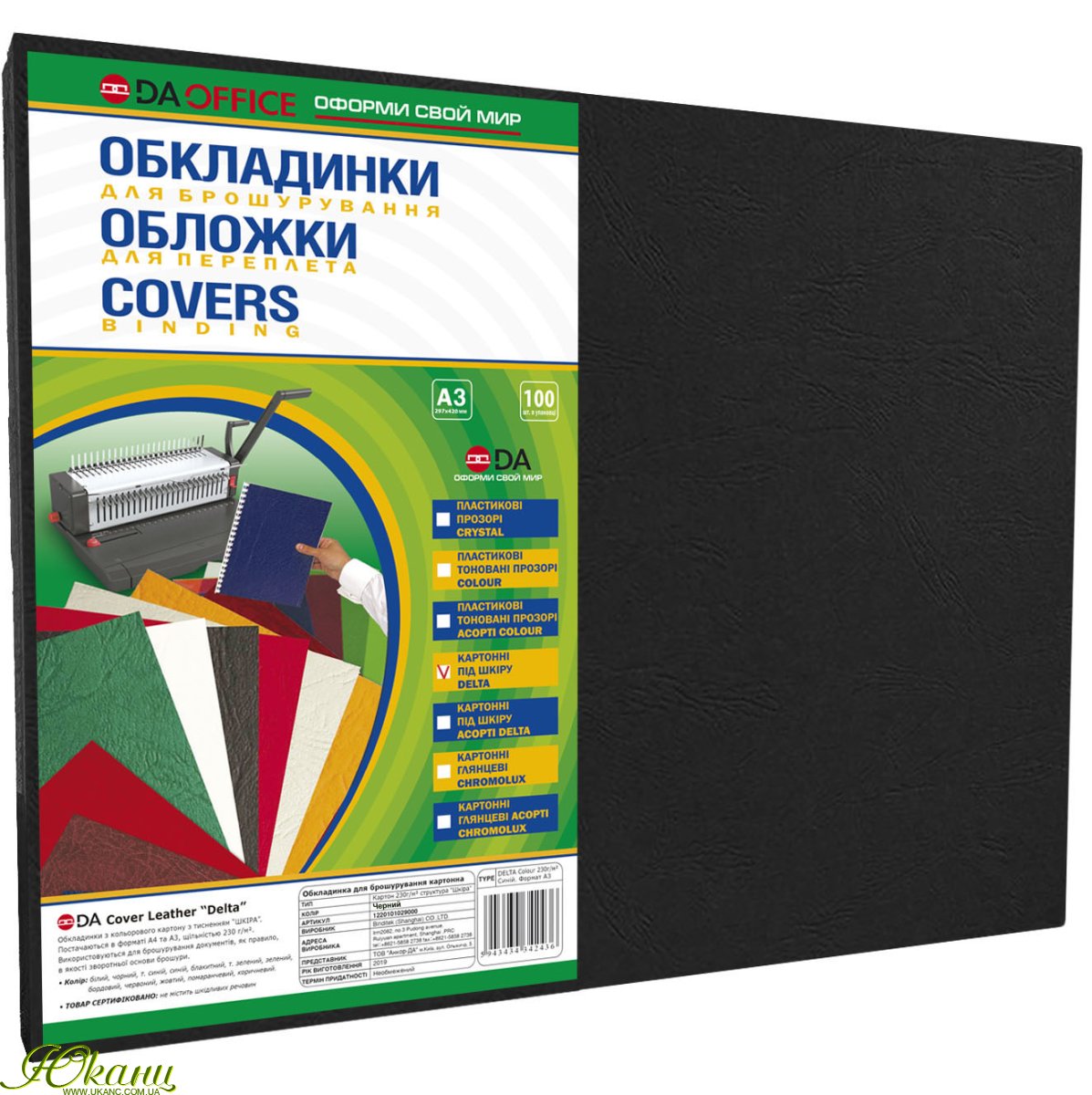 Обложка А3 DELTA, 230 г/м2, картон чёрный "под кожу" (100 шт/уп)