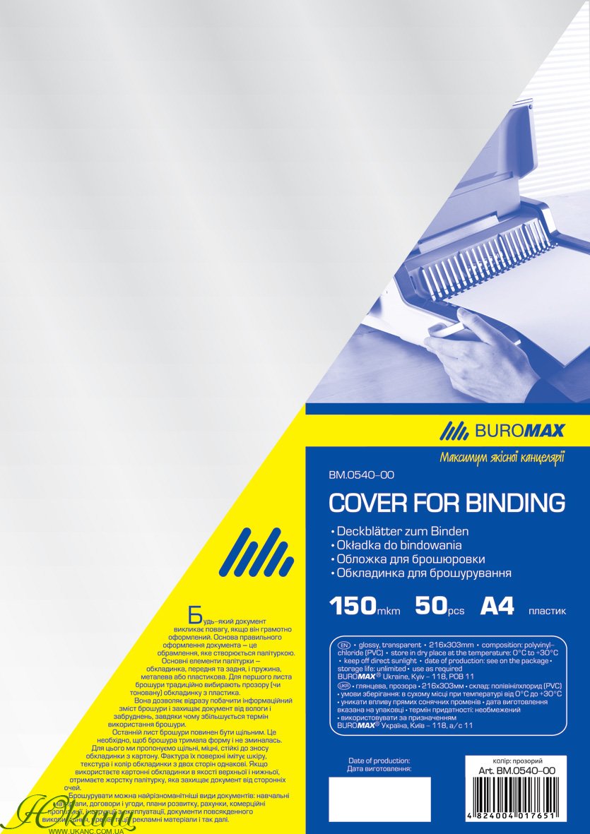 Обложка А4, прозрачный пластик, 150 мкм (50 шт./уп.) бесцветная