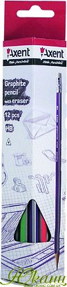 Карандаш простой, НВ, с ластиком с ластиком, трёхгранный, за 12 шт.