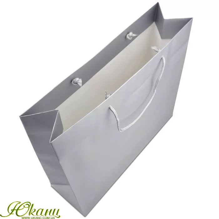 Паперовий пакет 32х10х27,5 серебро з ручками