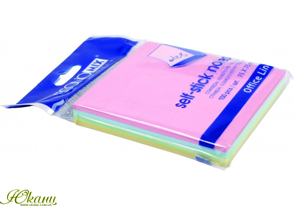 Бумага-стикер 75х75мм, 100л., 4 цвета, пастель