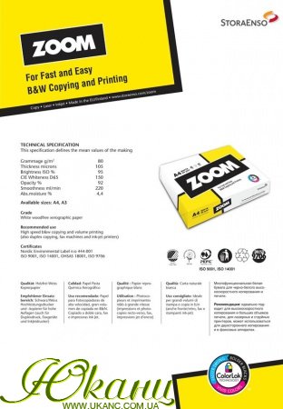 Сделайте заказ на сумму 700 грн. без учёта бумаги и получите спеццену на офисную бумагу А4 ZOOM 500 л. по цене: 180,95грн.