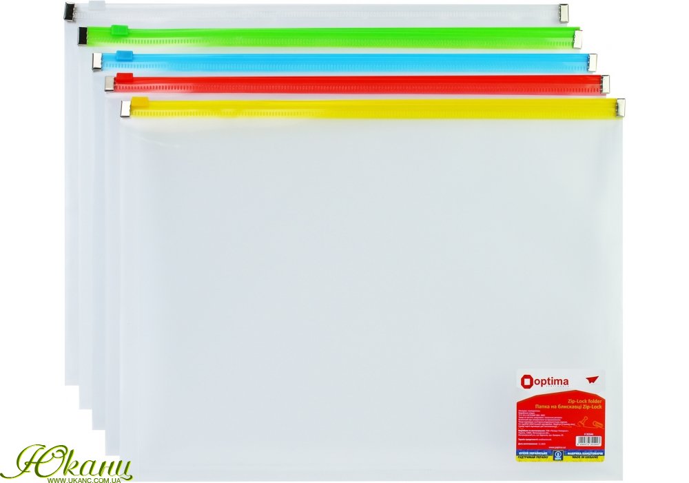 Папка пластиковая А4 Optima на застёжке zip-lock, прозрачная, ассорти
