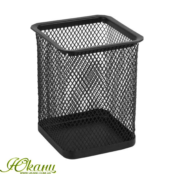 Подставка для ручек квадратная, металлическая сеточка, 80х80х100мм, черный