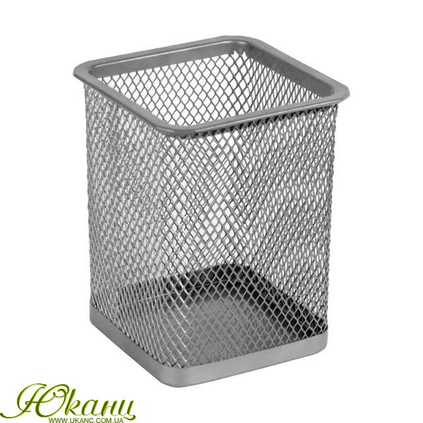 Подставка для ручек квадратная, металлическая сеточка, 80х80х100мм, серебрянная
