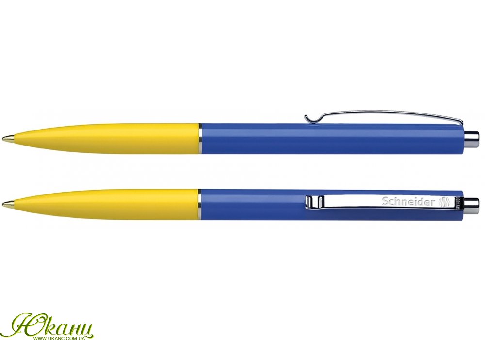 Ручка шариковая автоматическая Schneider К15, пишет синим 0,7 мм, корпус жёлто-голубой