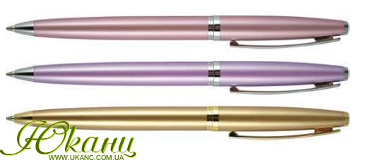 Металлический корпус. Поворотный механизм. Пишет синим.