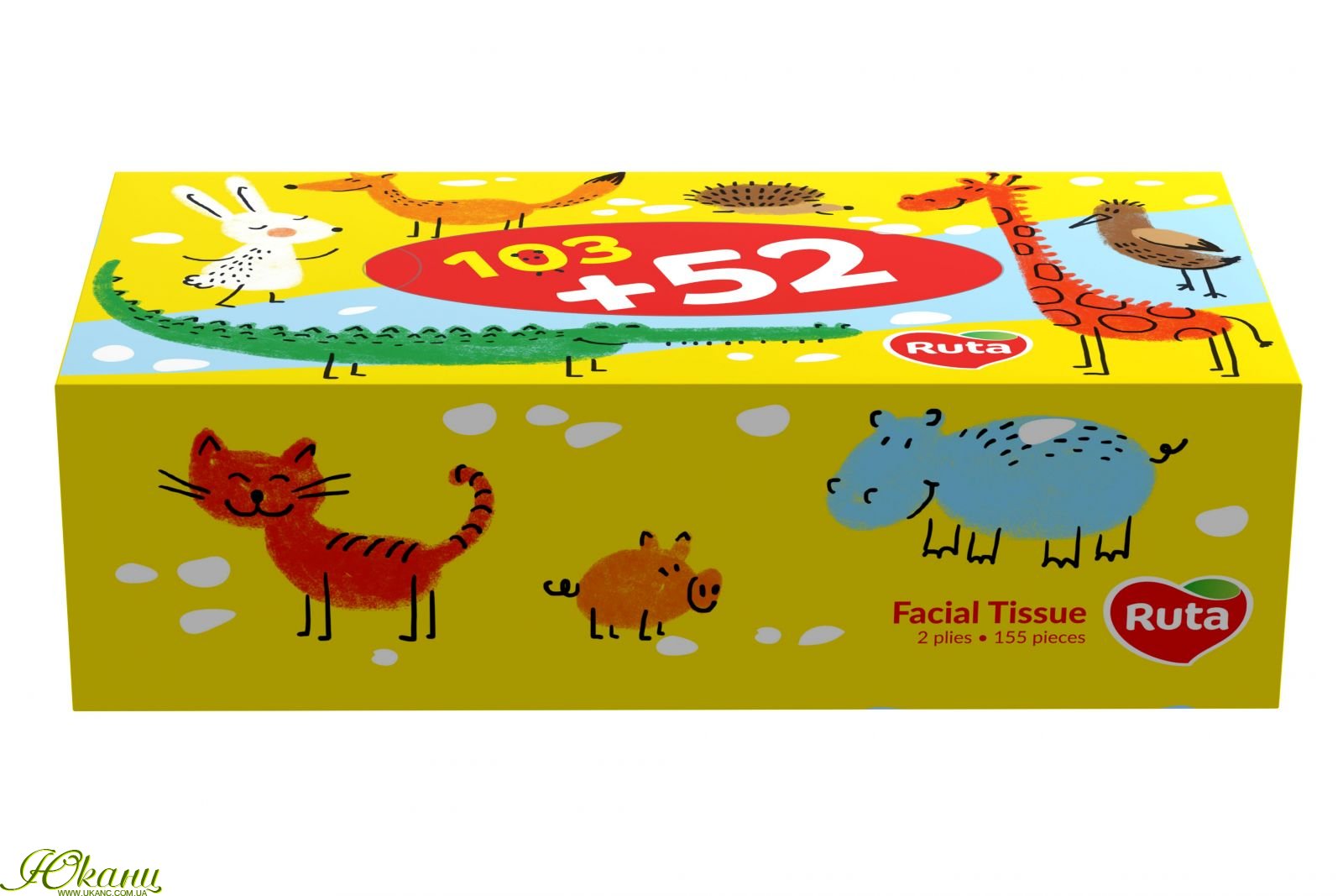 Салфетки бумажные в коробке Ruta Kids, 2-х слойные, 155шт