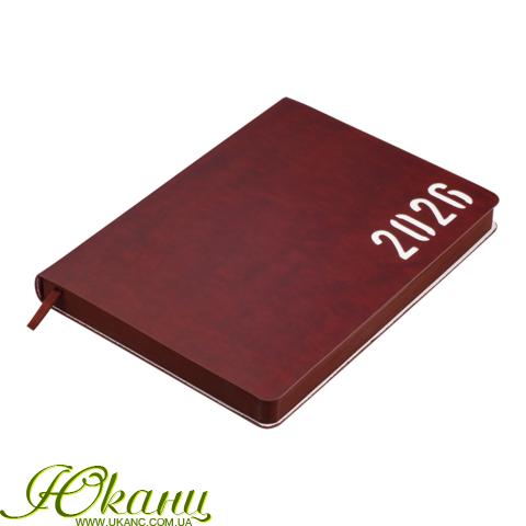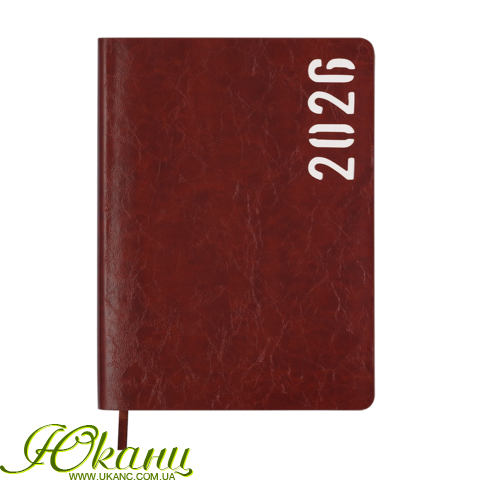 Щоденник датов. 2026 MIND, A5, коричневий, штуч.шкіра