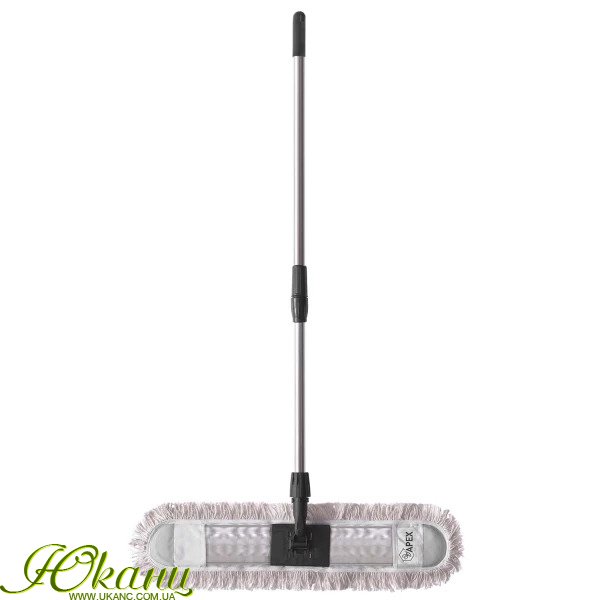 Зручна швабра з металевою рамкою і змінною ганчіркою-мопом з кишенями з бавовни. Призначена для прибирання невеликих приміщень площею до 100 м². Рукоятка з отвором виготовлена з пофарбованого металу, з 2-х частин, телескопічна - 90 см з подовженням до 130 см.
