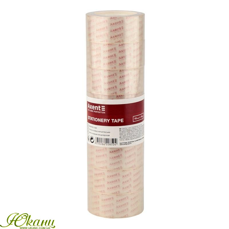 Канцелярська клейка стрічка використовується в офісній, банківській та побутовій сфері для склеювання пошкоджених документів, скріплення сторінок, розклеювання оголошень, захисту написів, виготовлення етикеток, для упаковки подарунків, коробок, пакетів та ін. Стрічка канцелярська Axent має прозору поверхню. Стрічку практично не видно на різних поверхнях.
