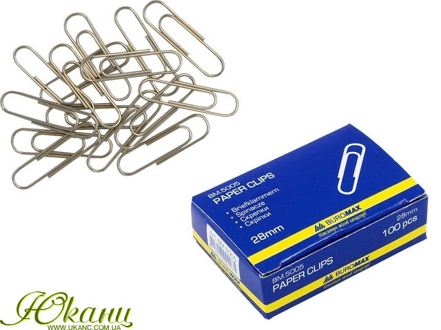 Скрепки 28мм никелированные, 100шт., круглые