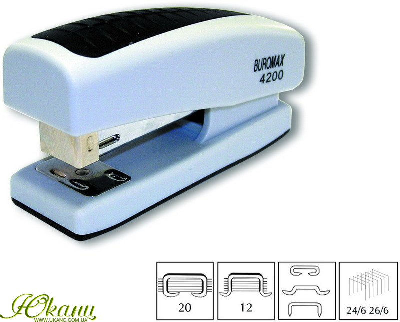 Степлер пластиковый BUROMAX, 20 листов, (скобы №24; 26), серый