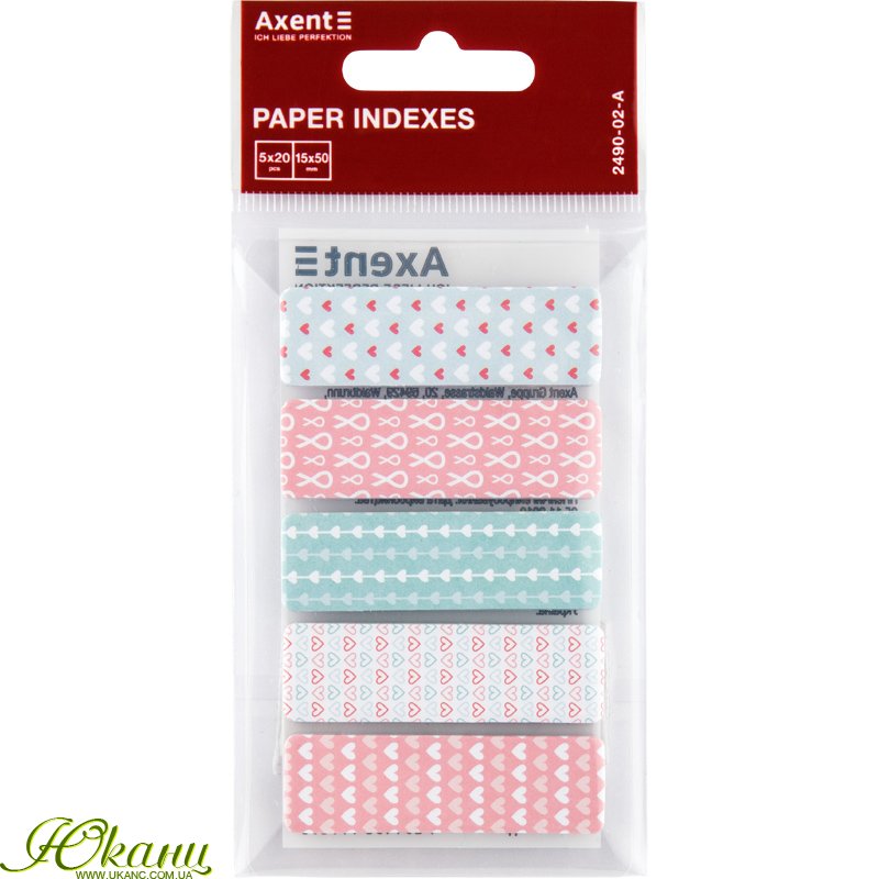 Закладки бумажные Hearts 12x50мм, 5 цветов, 100 шт., прямоугольные, Axent