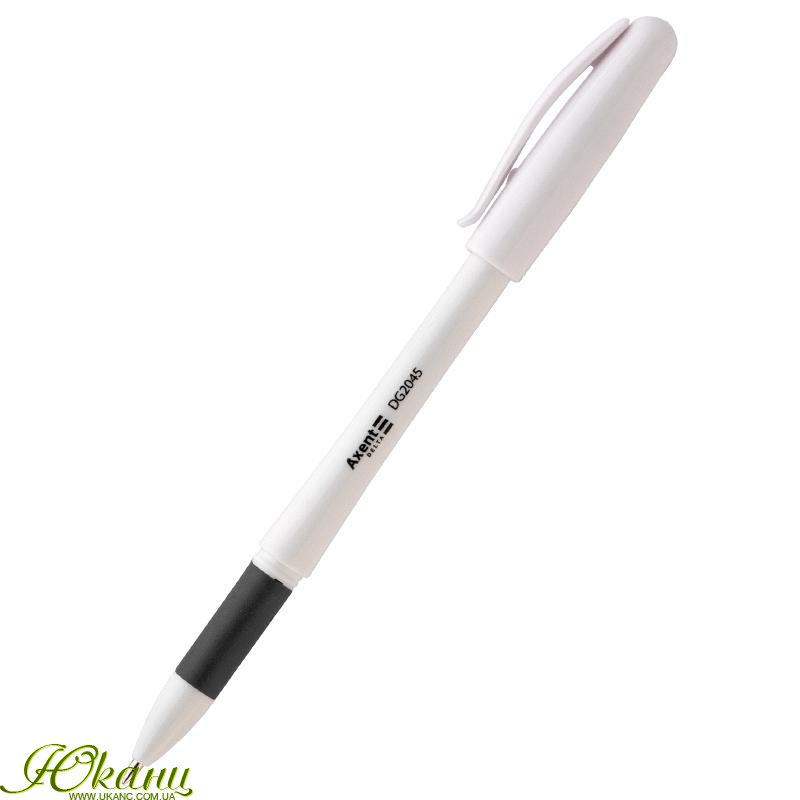 Гелева ручка Delta by Axent DG2045-01 має пластиковий білий корпус. Для зручності написання на ручці в зоні захвату присутній гумовий грип. Колір чорнил: чорний. Довжина стержня 126 мм, тонкий пишучий вузол – 0.5 мм. Довжина написання 800 м. Для ручки підходить стержень DGR2021.