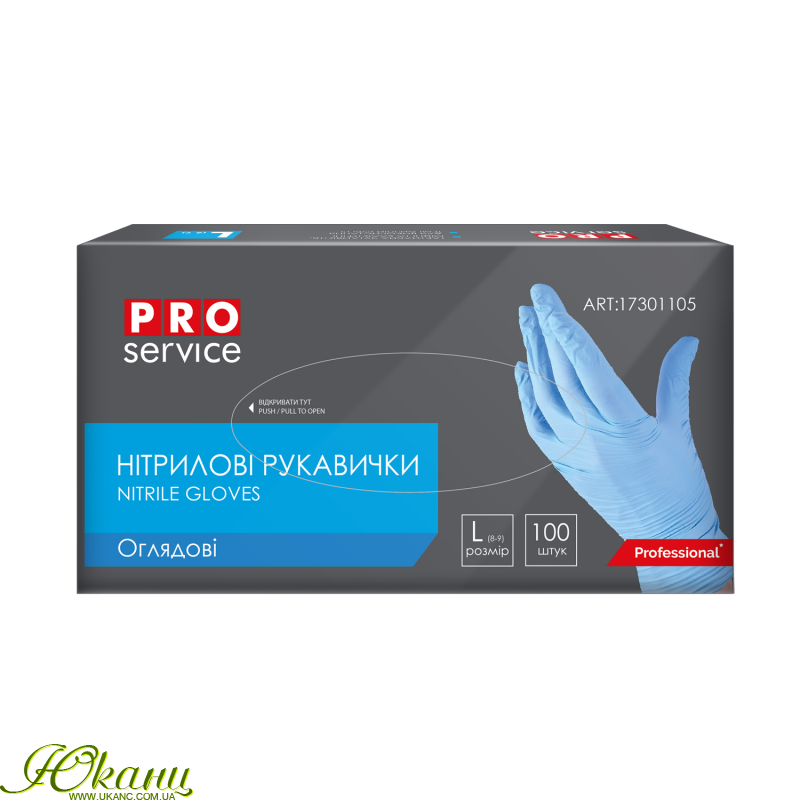 Рукавички нітрилові, нестерильні, блакитні, 100шт/уп., розмір L, PRO SERVICE