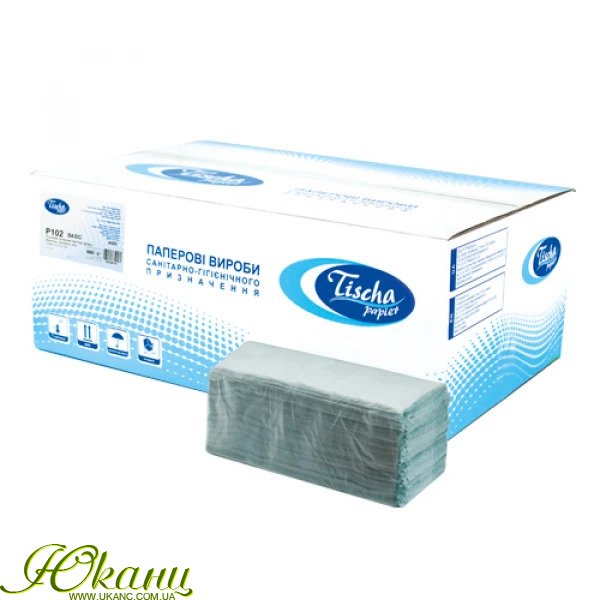 Рушник паперовий V-складка 22,5x22,5 см, Tischa Papier, BASIC, макулатура, зелені, 1-шарові, 200арк.х20пач=4000арк/ящ. 20пач/200шт/1ящ