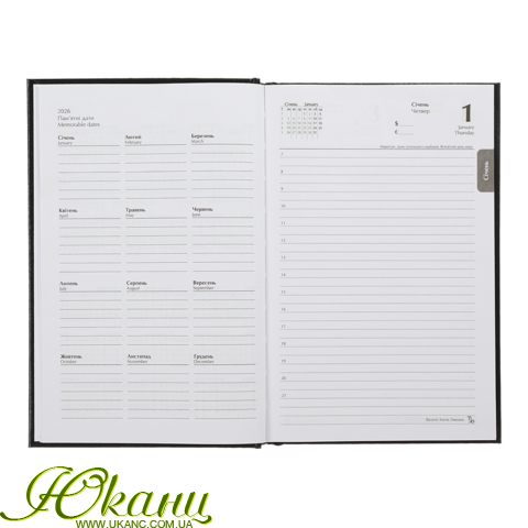 - Датована сторінка з організатором часу з 7:00 до 21:00, календарем на поточний/наступний місяць, позначенням дня тижня, знаку зодіаку, іменинників