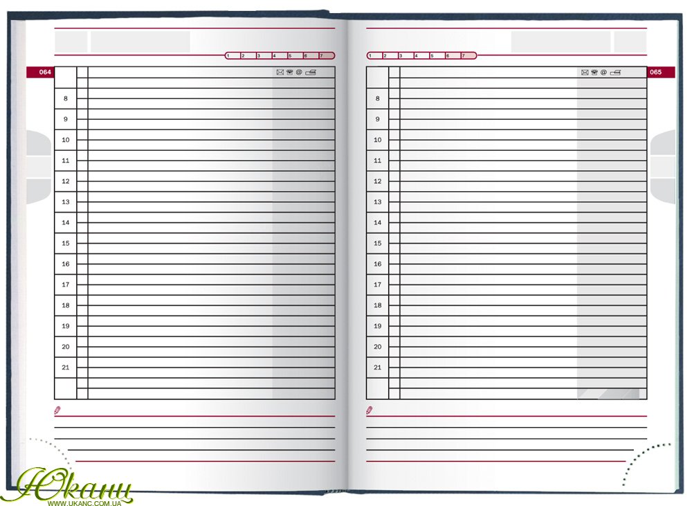 Недатований щоденник Агенда. Високоякісний білий папір 70 г/м2. Чітка печатка у двох квітах: сірому й бордовому. Одна сторінка – один день. Сторінки загального планування. Інформаційний блок. Ексклюзивний дизайн.