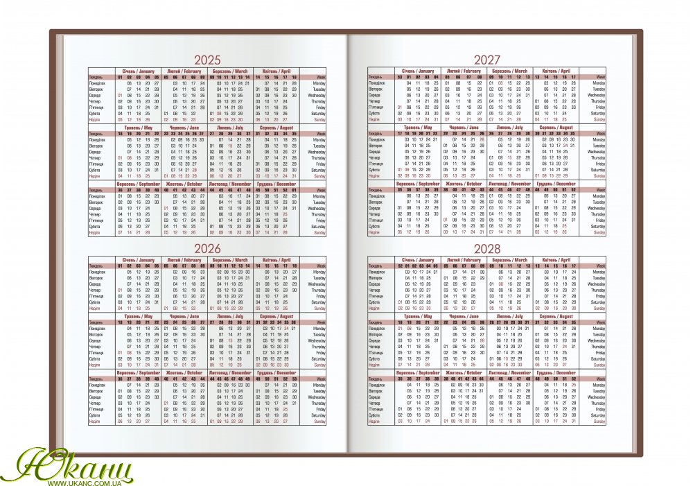 - Одна сторінка – один робочий день, календарі на 4 роки, нотатник в клітинку.