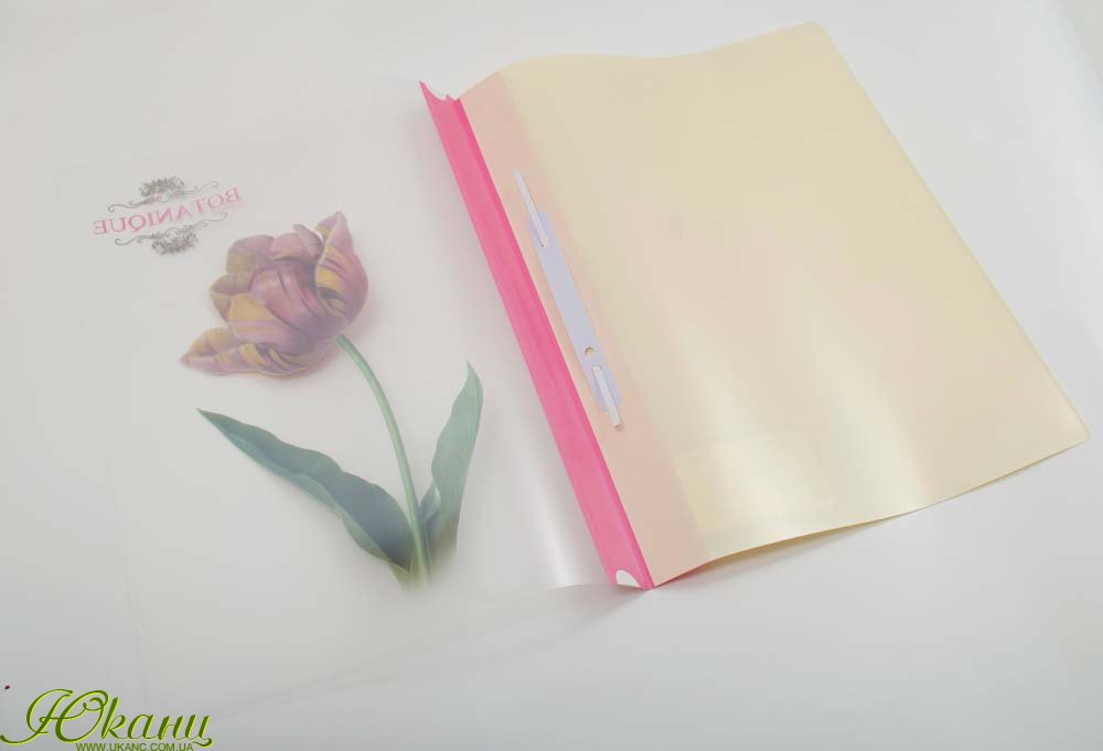 Оригінальний швидкозшивач із барвистим квітковим принтом на прозорій основі й ніжно-бежевою тильною стороною. Для більшої зручності передбачена внутрішня кишеня. Формат А4. Місткість: 50 аркушів. Товщина пластику: 0,45 мм. Матеріал: поліпропілен (РР)